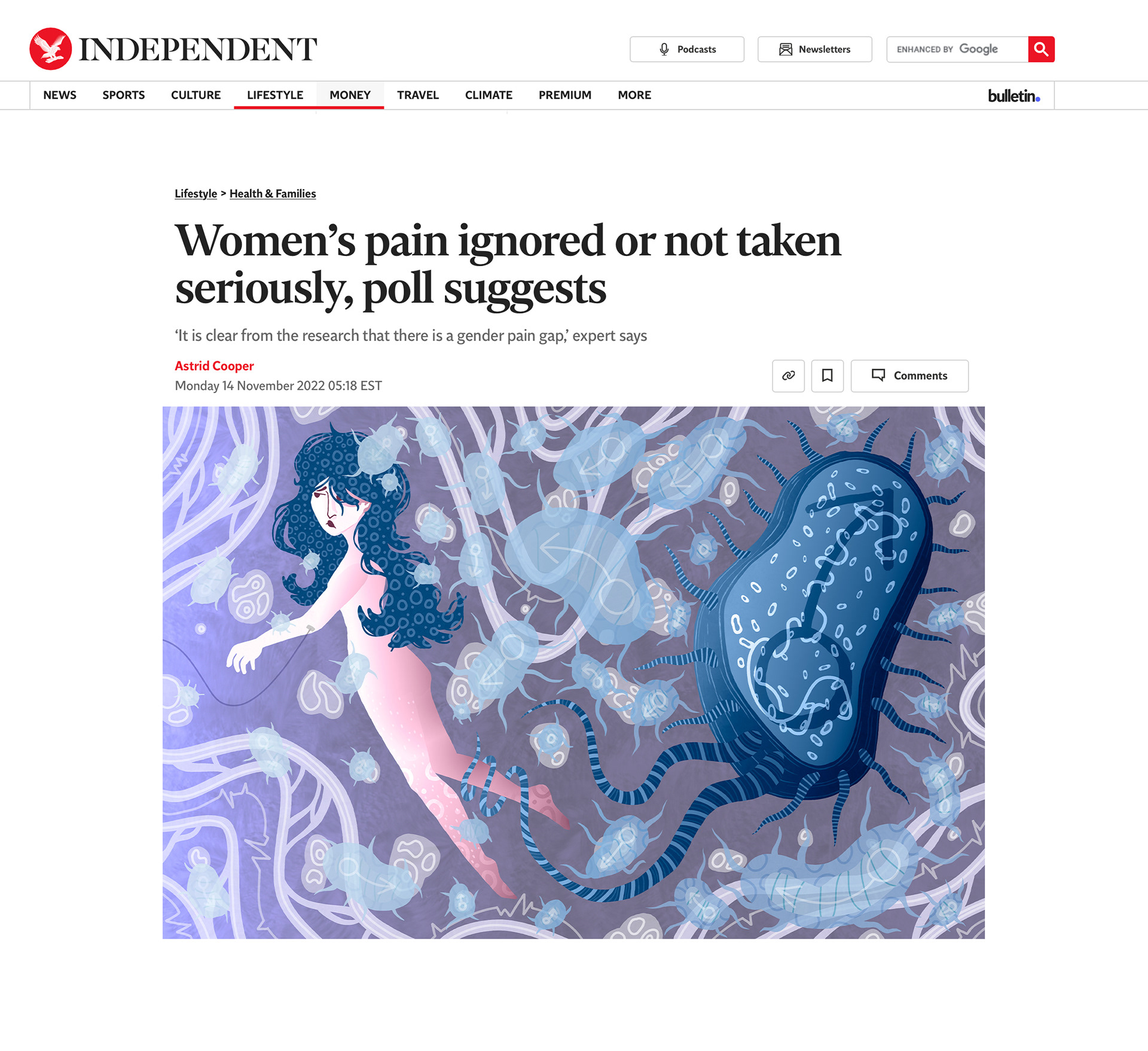 An editorial digital illustration for a The Independent article on medical misogyny.